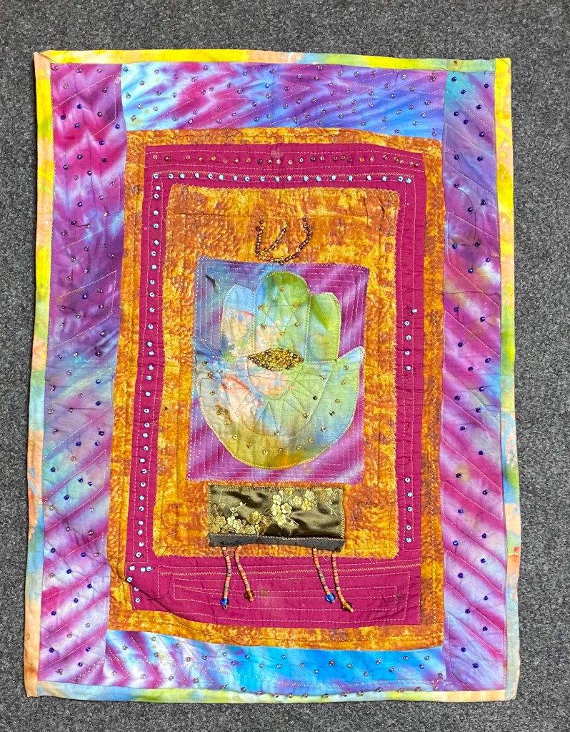 Art quilts are a fusion of traditional quilting techniques and contemporary artistic expression. Unlike their utilitarian counterparts, art quilts prioritize creativity and self-expression. These textile artworks, infused with personal stories, emotions, and symbolism, provide a tangible and tactile means of translating inner experiences into visual narratives. Additionally, art quilts allow the artist to blend creativity and sustainability. When creating an art quilt one can embrace the ethos of repurposing and recycling, thus giving new life to discarded fabrics, found items, and other materials that may have be cast aside.